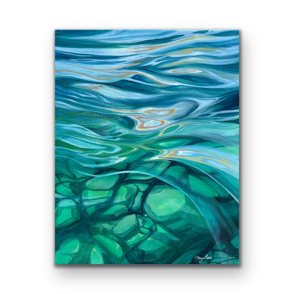 Peaceful, meditative, healing, and renewing. To achieve these moments in a painting, I infuse emotions, memories, dreams, symbols, and always love into my work. This original painting was created in the summer of 2023. The painting is acrylic on canvas, with a clear protective finish.