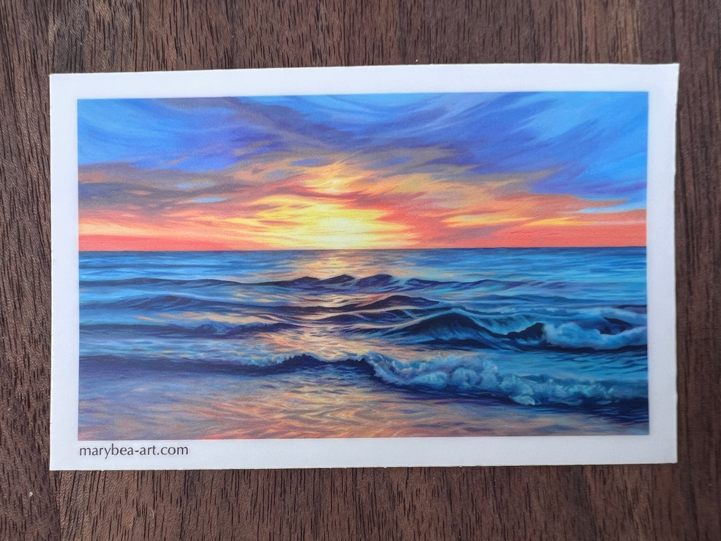 Introducing Mary Bea Art's new vinyl stickers- they're affordable, vibrant, durable, and waterproof. These captivating 2" x 3.75" stickers feature original artwork from Mary Bea, perfect for adding beauty to all your belongings. Enhance your laptop, cell phone, water bottle, notebook, bumper, bicycle, and more. Save on 7-packs, buy 6 to get the 7th sticker for free! Get your hands on these stunning vinyl stickers today, for a truly unique touch that you can stick anywhere!
